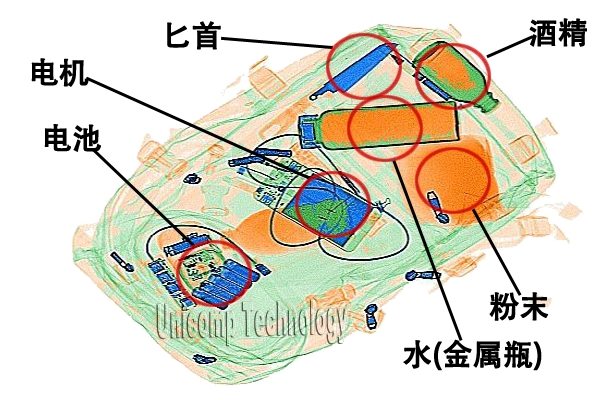 X射线安全检查设备是借助于传送带将被检查行李送入履带式通道完成的。行李进入通道后,检测信号被送至控制单元,触发射线源发射 X射线束。一束经过准直器的非常窄的扇形X射线束穿透传送带上的行李物品落到双能量探测器上,高效半导体探测器把接收到的X射线变为电信号,这些很弱的电流信号被直接量化,通过通用串行总线传送到工业控制计算机作进一步处理,经过复杂的运算和成像处理后得到高质量的图像。