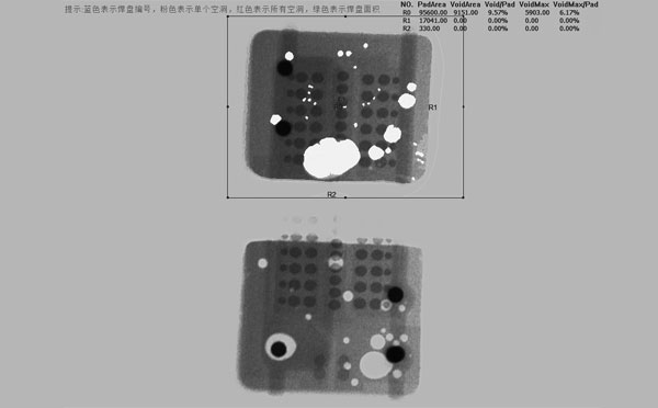 BGA元器件在电焊焊接结束后,基于其点焊全被元器件本体所覆盖,所以既没法选用传统的目测方法观察检测全部点焊的电焊焊接质量,也不能应用自动光学检测设备对点焊的外观做质量评判。为达到有效的检测,可选用X-ray检测设备对BGA元器件的点焊进行检测。