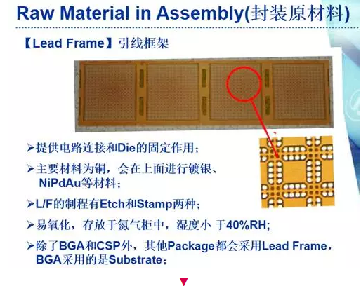 ➢指芯片(Die)和不同类型的框架(L/F)和塑封料( EMC)形成的不同外形的封装体。