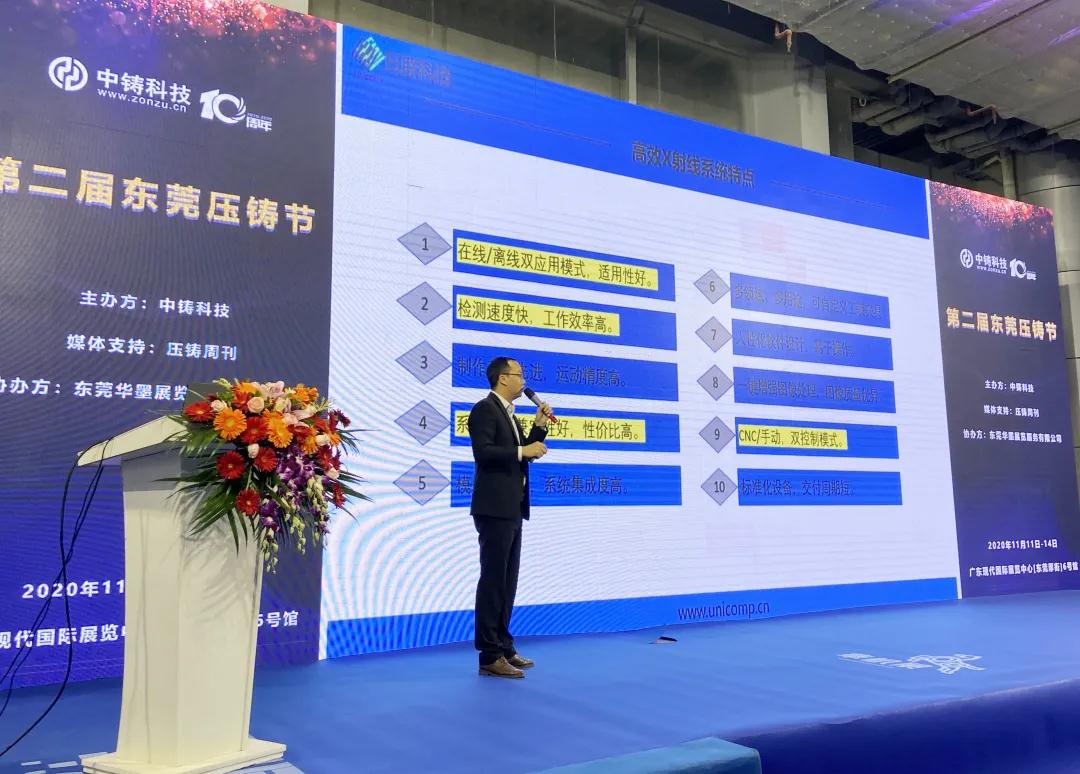 金年会科技展位参展观众络绎不绝,展台旁“压铸新技术”研讨会也座无虚席。金年会科技代表田经理上台演讲,与大家分享经验与技术,共同探讨压铸行业发展新方向。