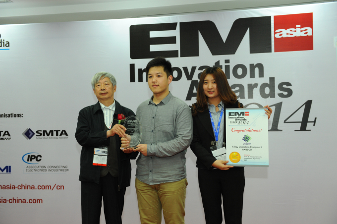 2014.4.24上海NEPCON展传来喜讯,金年会科技自主研发的国内首款集160KV高电压、1μm开放式微聚焦射线管及3D CT扫描等多种高端技术于一体的X射线检测仪AX8800获得2014EM ASIA年度“创新奖”,此次获奖已是金年会科技连续4年成功蝉联此大奖。此前金年会科技的微聚焦X射线检测设备AX7300、AX8200、AX8600凭借其高性能和客户的广泛认可,均获得该奖项的年度大奖。