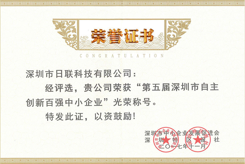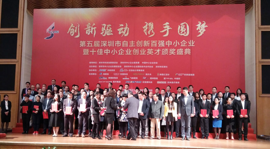 2017年11月23日下午,由深圳市科创委、深圳市中小企业服务署、中国中小企业协会指导,深圳市中小企业发展促进会与深圳特区报社联合主办的“创新驱动·携手圆梦--第五届深圳市自主创新百强中小企业暨十*中小企业创业英才颁奖盛典”在五洲宾馆盛大举行,金年会科技等百家企业获得了该荣誉,深圳市委市政府相关领导,企业代表、及社会各界代表出席了本次盛典。