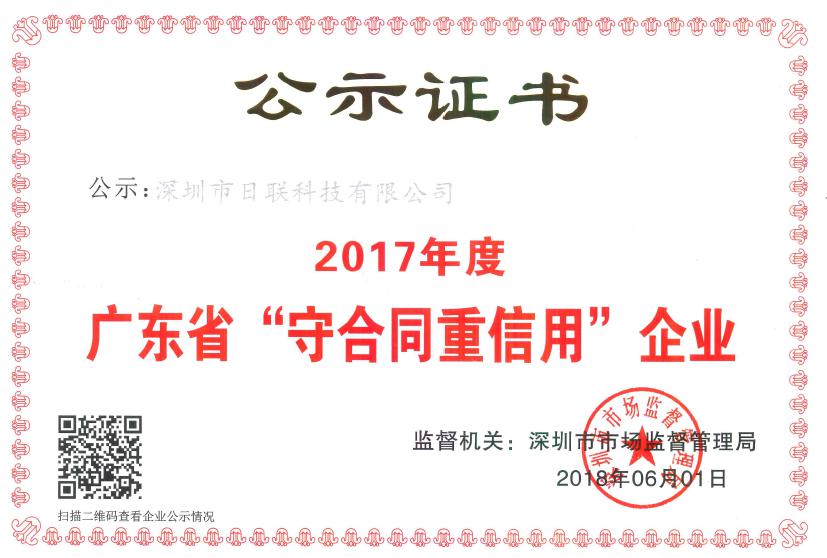 近日,广东省工商行政管理局发布关于2017年度 “广东省守合同重信用企业”的公告,金年会科技凭借十多年来的积累与信誉,再度荣获“守合同重信用企业”这一荣誉称号。
