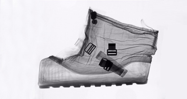 一张高腰套靴的X射线图片显示了鞋带调整的位置