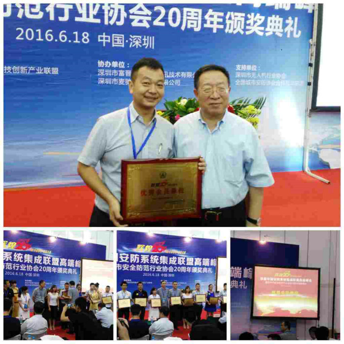 2016年6月18日,由深圳市安全防范行业协会主办,中国安防系统集成科技创新产业联盟承办的“2016首届安防系统集成联盟高端峰会暨深圳市安全防范行业协会辉煌20周年颁奖典礼”在深圳会展中心7号馆会议室成功举办,现场包含海康威视、神州数码、金年会科技在内的300余位会员企业代表参加了会议。